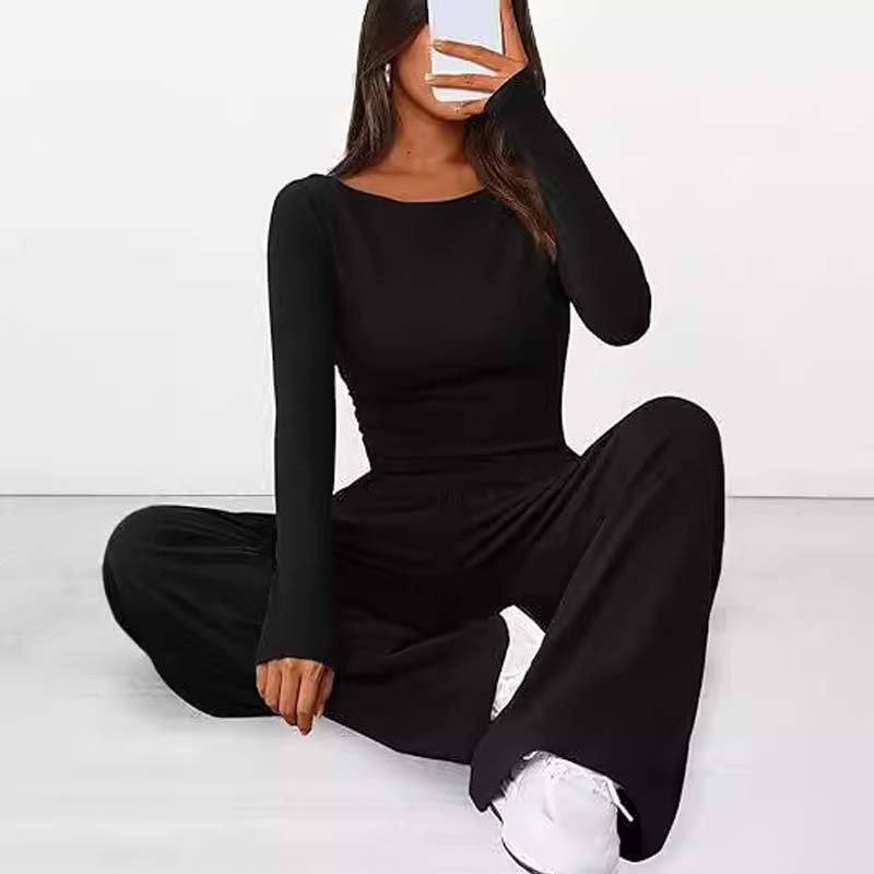 DISEÑO DE PROPORCIÓN EQUILIBRADA: La parte superior ajustada contornea los hombros y la cintura para una silueta pulida, mientras que los pantalones de pierna ancha de cintura alta crean un efecto adelgazante. La cintura con cordón permite un ajuste, y la tela fluida cae elegantemente con cada paso.
