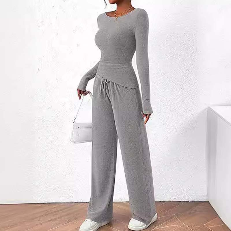 Conjunto asimétrico de camiseta de manga larga y pantalón ancho