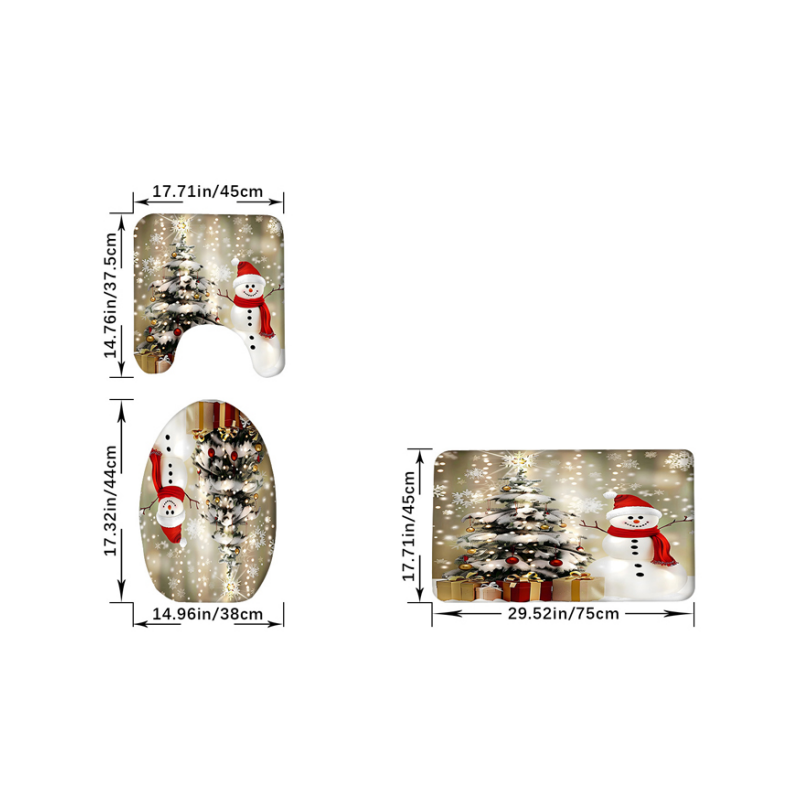Package Include: 1 * Christmas Snowman Shower Curtain Set with 12 Hooks/3-Piece Set/4-Piece Set