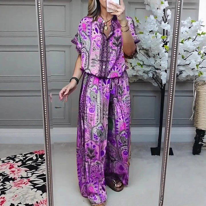 💕Conjunto de 2 piezas de top estampado y pantalones de pierna ancha para mujer(副本)