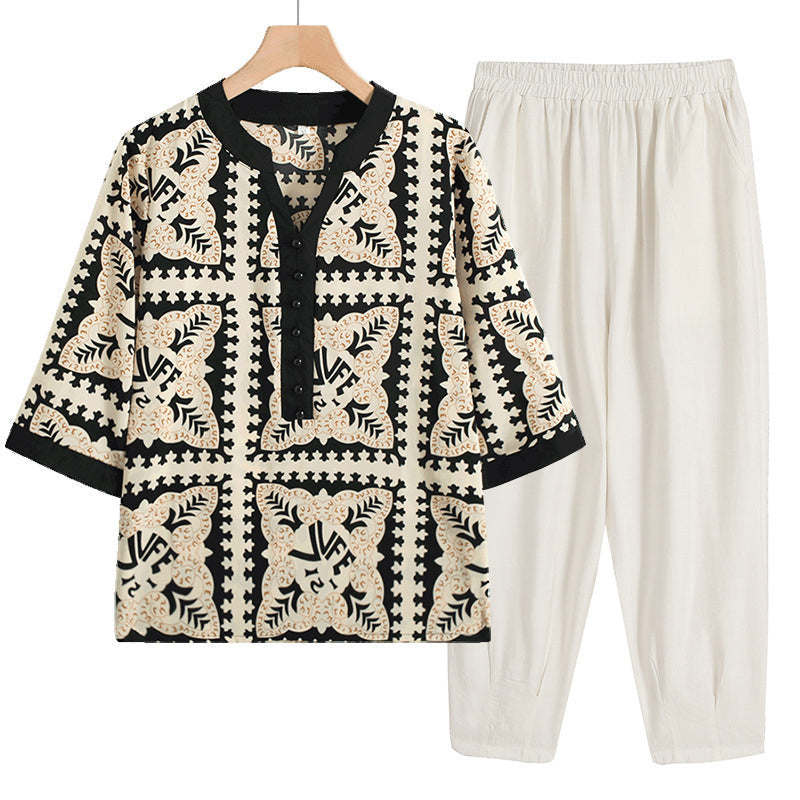 Conjunto de dos piezas para mujer: top casual holgado con mangas 3/4 y pantalón