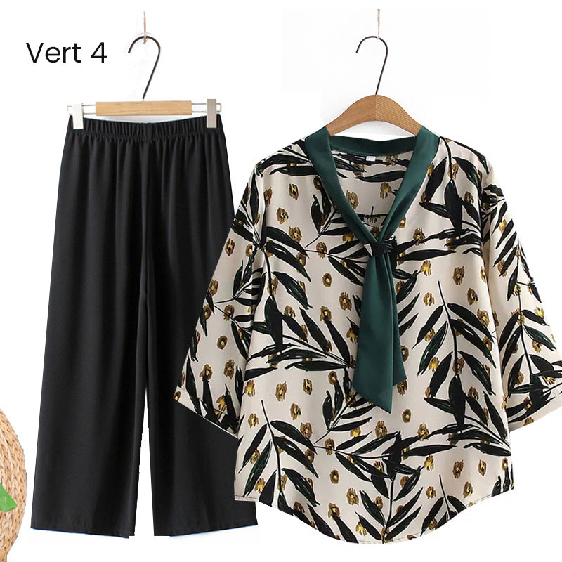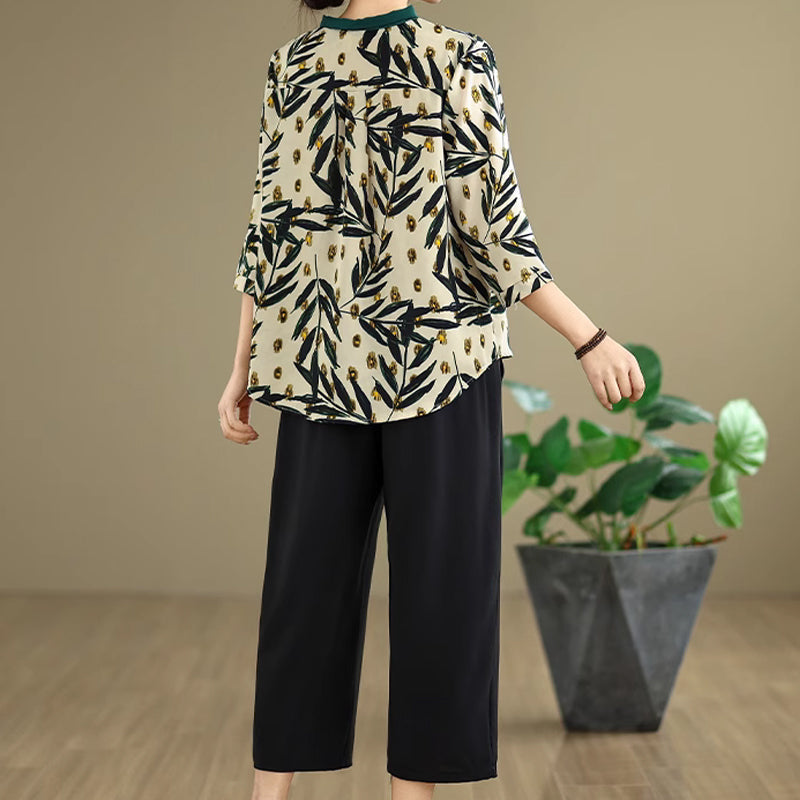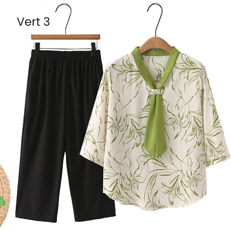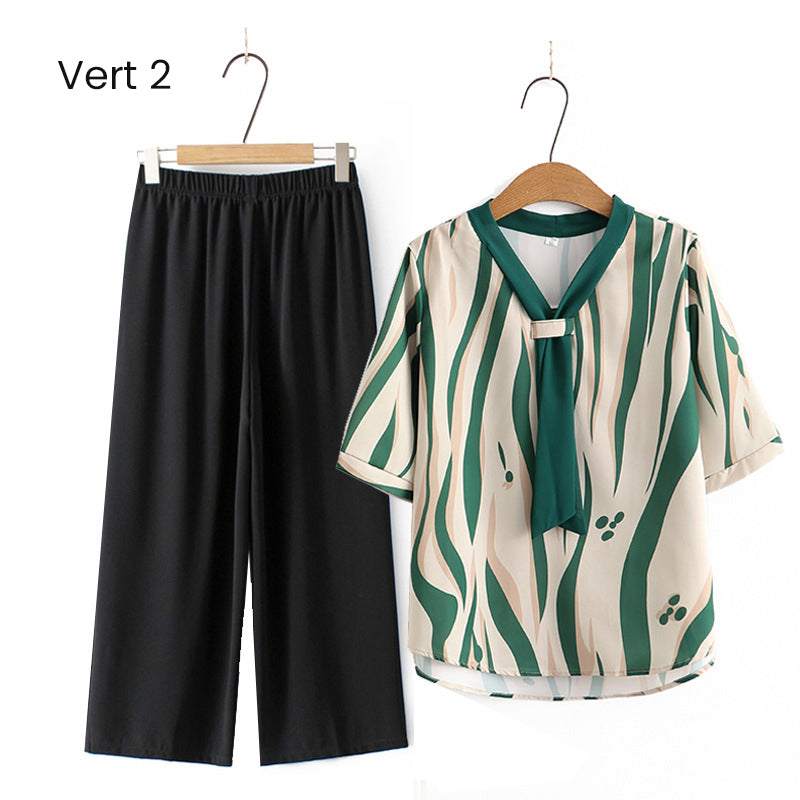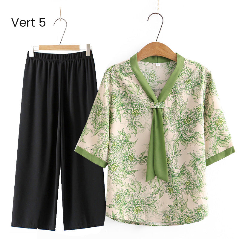 Elegante conjunto de top con cuello en V y pantalones rectos