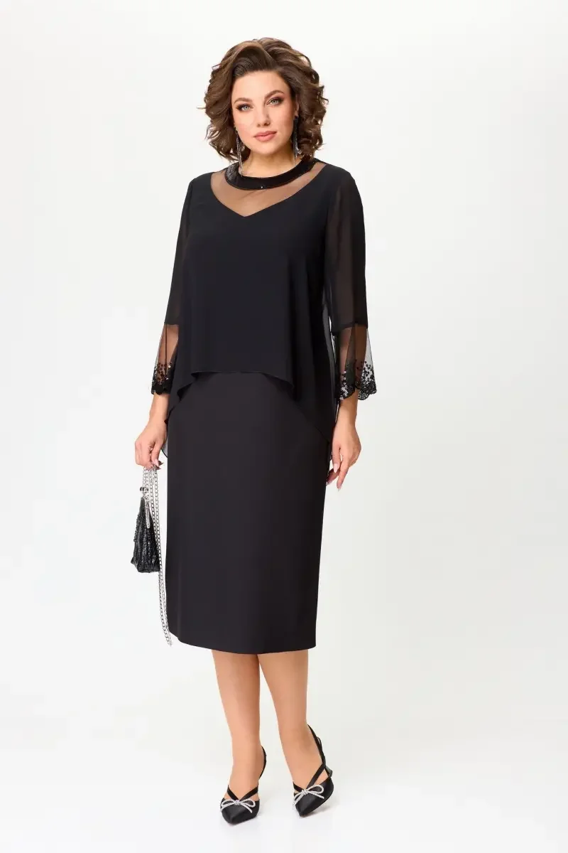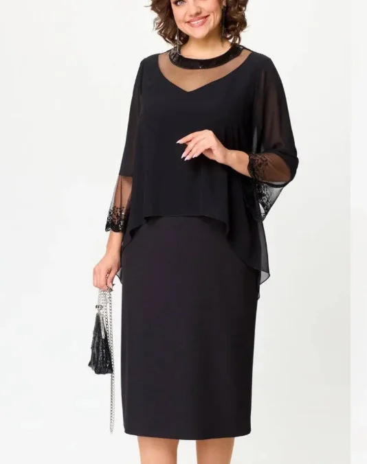 Aumentar cantidad para 💖Elegantes vestidos negros con mangas 3/4 para mujer