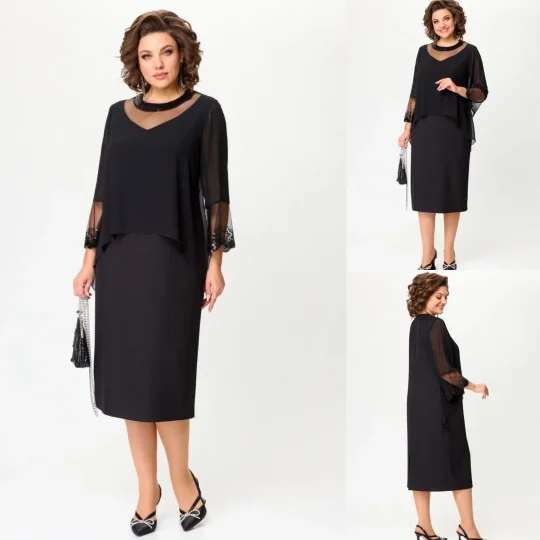 💖Elegantes vestidos negros con mangas 3/4 para mujer
