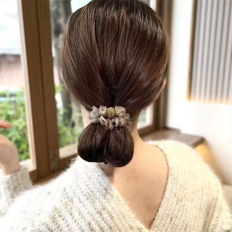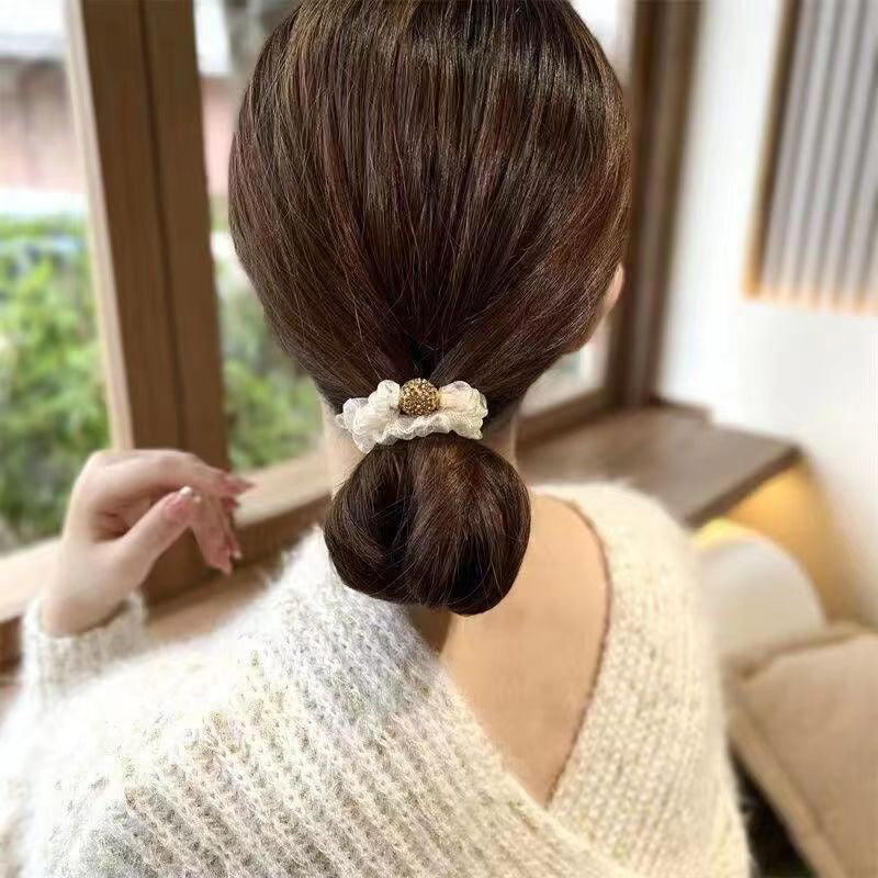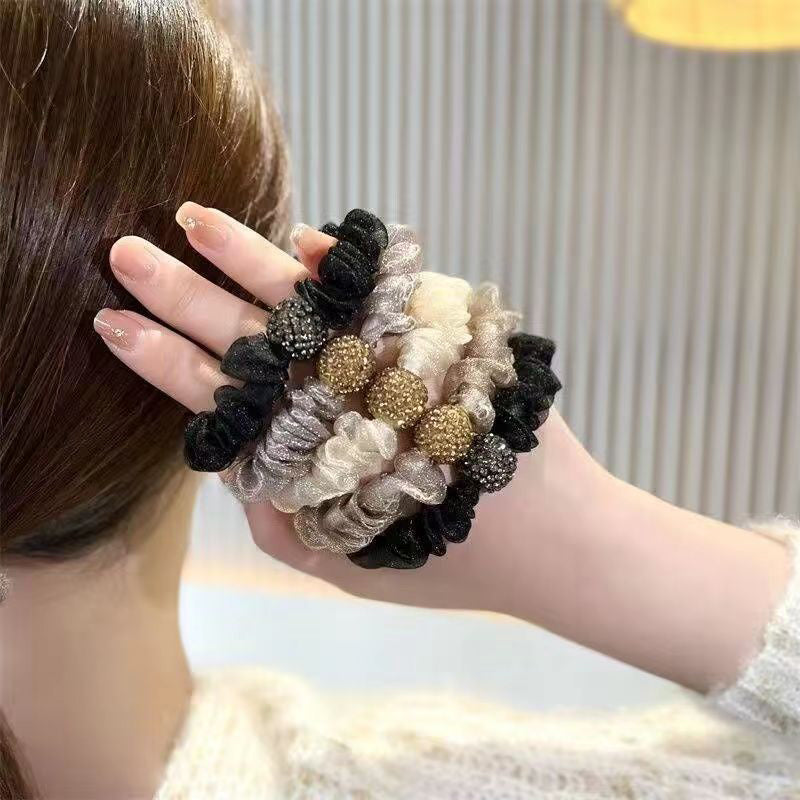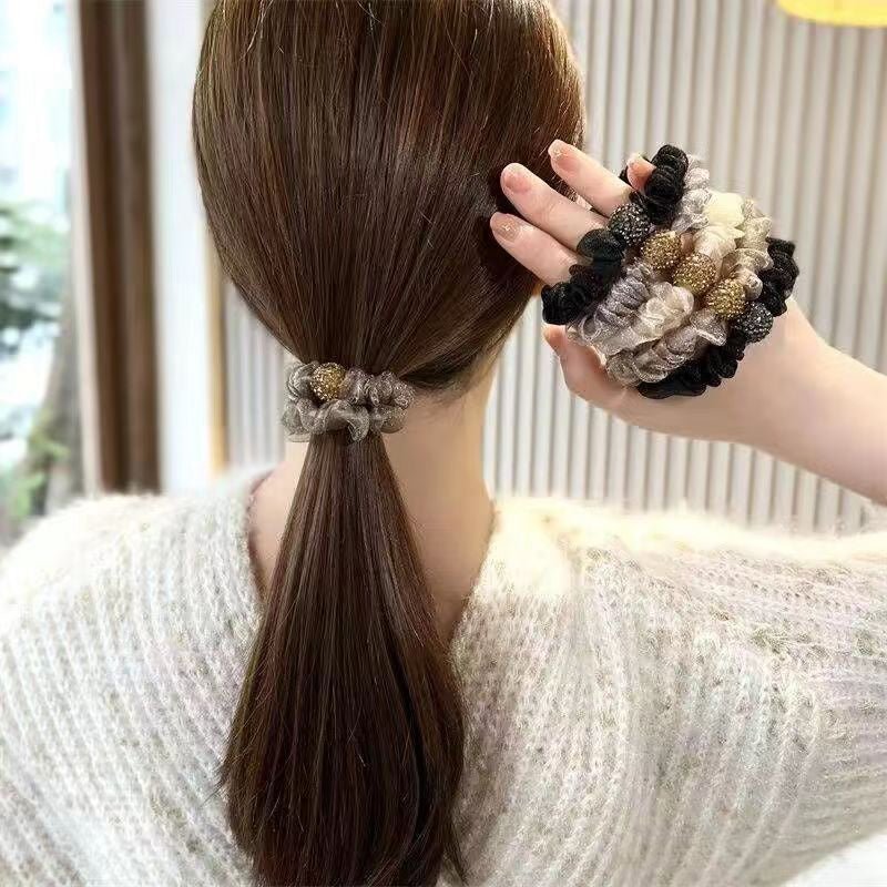Lazo para el cabello de malla plisada con purpurina de alta elasticidad