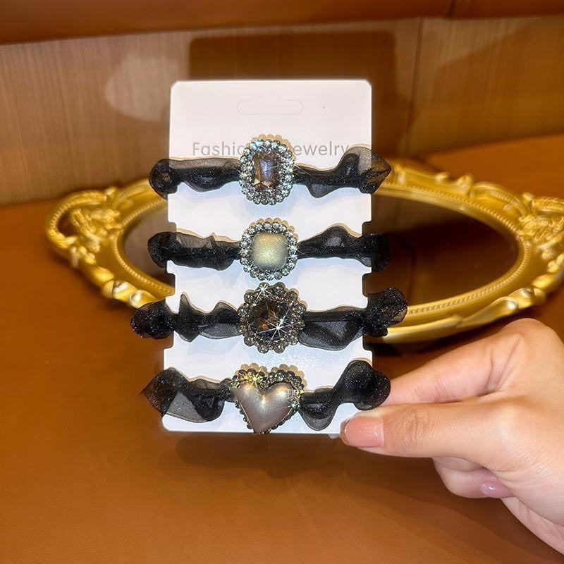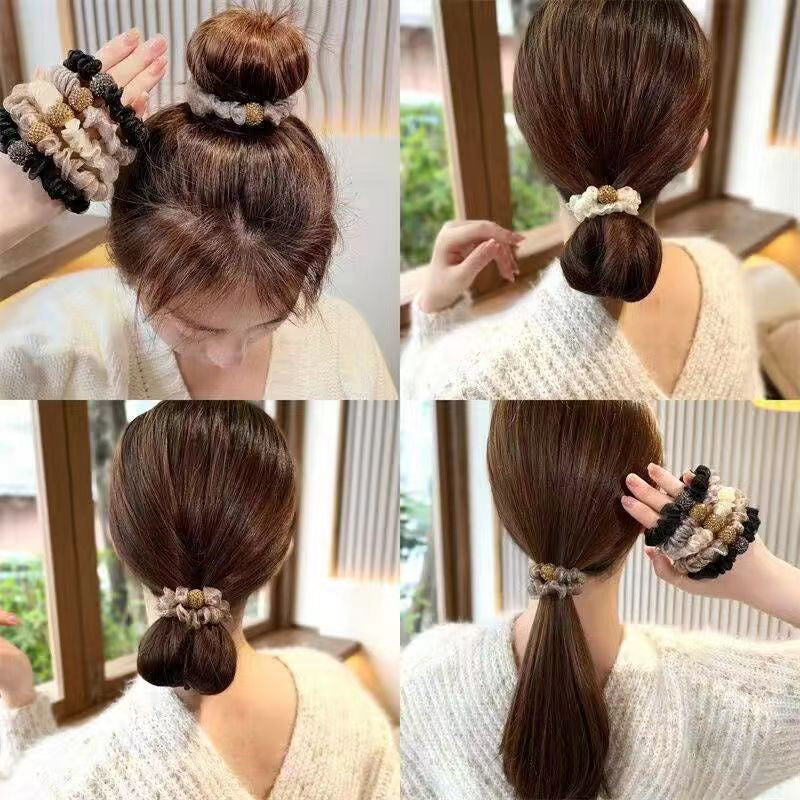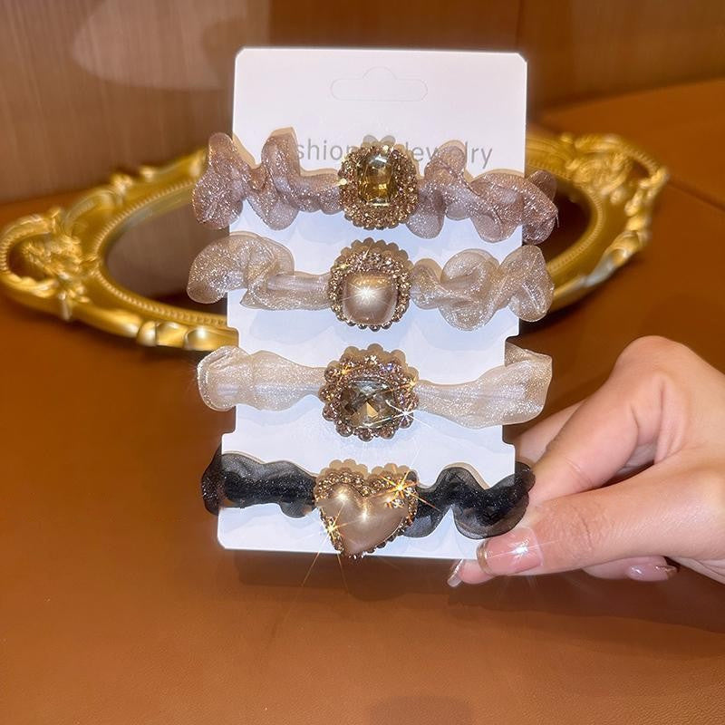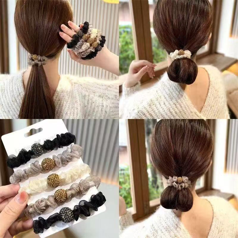 El paquete incluye: 1* Lazo para el cabello de malla de purpurina plisada de alta elasticidad (4 piezas)