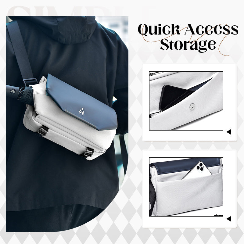 ALMACENAMIENTO DE ACCESO RÁPIDO: un área de almacenamiento semiabierta en la parte inferior permite un acceso rápido a elementos esenciales más pequeños, perfecto para cuando necesita algo con urgencia. Esta función de acceso rápido elimina la necesidad de abrir toda la bolsa, lo que le brinda comodidad y velocidad cuando está en movimiento.