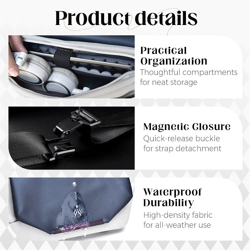 CIERRE MAGNÉTICO: la bolsa cuenta con una hebilla magnética de liberación rápida en la correa para el hombro, lo que permite un fácil desmontaje. Este cierre magnético simplifica el proceso de quitar o ajustar la correa, proporcionando una forma segura pero sin esfuerzo de ajustar el ajuste y la funcionalidad de la bolsa.