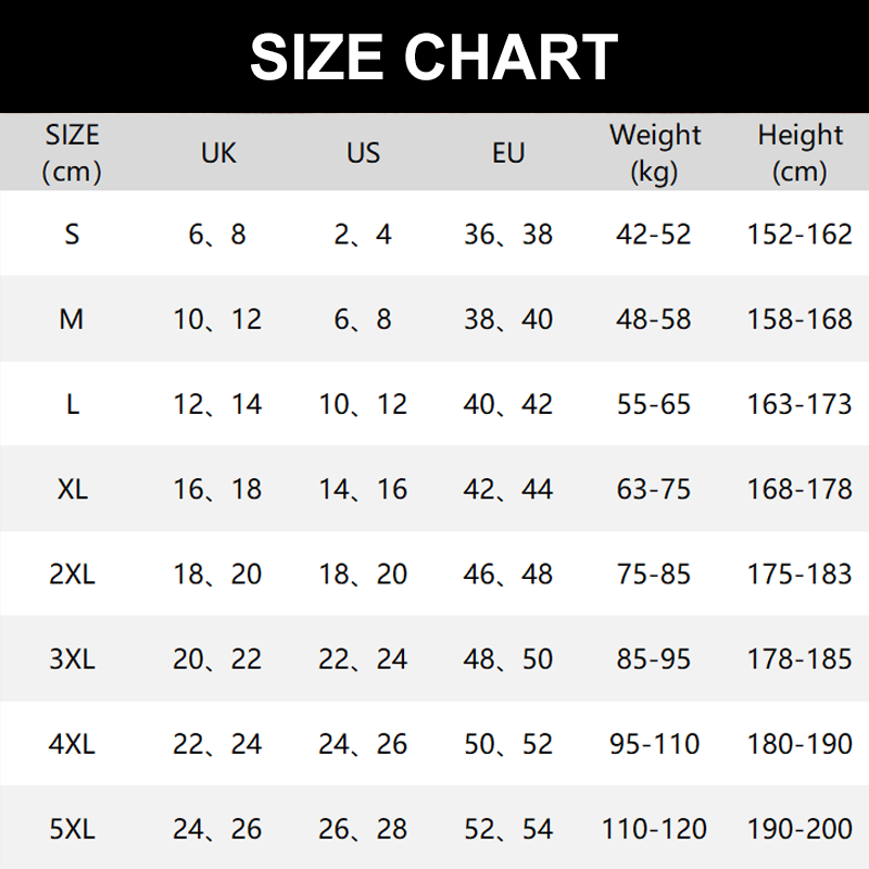 Talla: S, M, L, XL, 2XL, 3XL, 4XL, 5XL