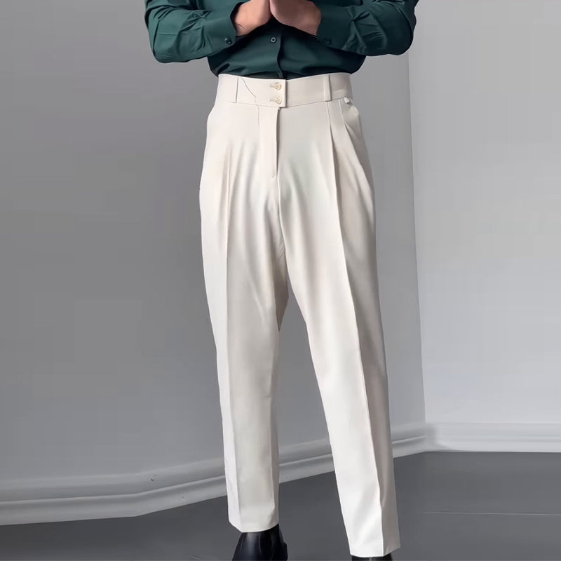 AJUSTE FAVORECEDOR: Diseñado con un corte preciso de cintura alta para acentuar tu físico. La caída estructurada y los pliegues crean un aspecto pulido, asegurando comodidad y confianza ya sea que estés sentado o de pie.