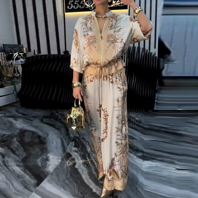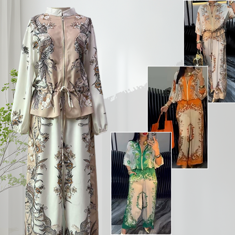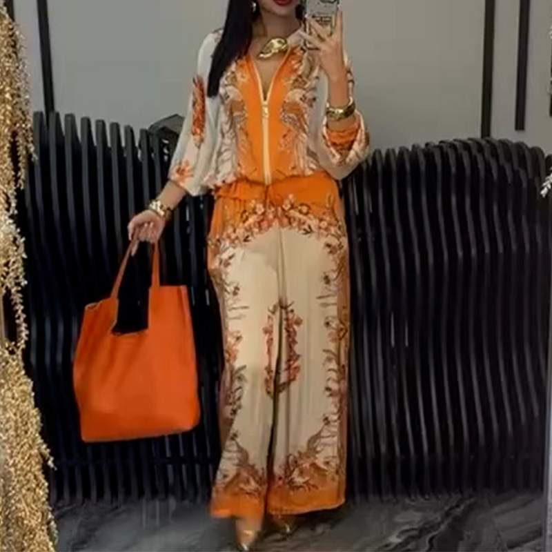 El paquete incluye: 1* Conjunto de 2 piezas de pantalones de pierna ancha y top con cremallera impresa