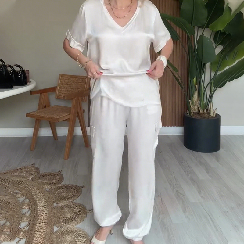 Conjunto de 2 piezas de pantalones con cuello en V elegante