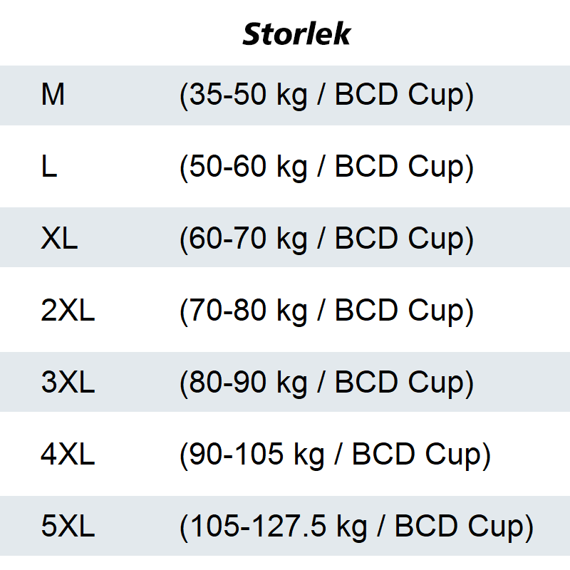Größe: M (35-50 kg/copa BCD), L (50-60 kg/copa BCD), XL (60-70 kg/copa BCD), 2XL (70-80 kg/copa BCD), 3XL (80-90 kg/copa BCD), 4XL (90-105 kg/copa BCD), 5XL (105-127,5 kg/copa BCD)
