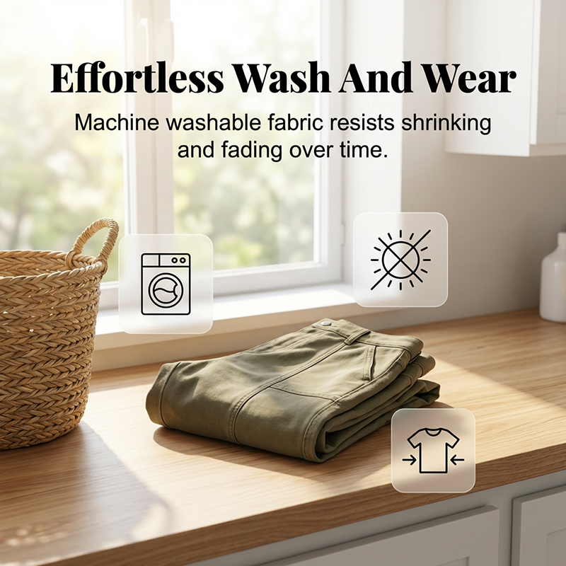 TEJIDO ESTRUCTURADO Y RESISTENTE A LAS ARRUGAS - Confeccionados con un material mixto duradero que mantiene su forma y resiste las arrugas, estos pantalones conservan un aspecto impecable y pulido durante todo el día con un mínimo esfuerzo y sin necesidad de plancharlos.