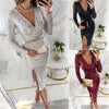 El paquete incluye: 1 * elegante vestido ajustado con lentejuelas divididas y escote en V
