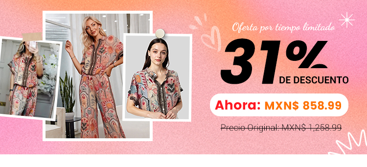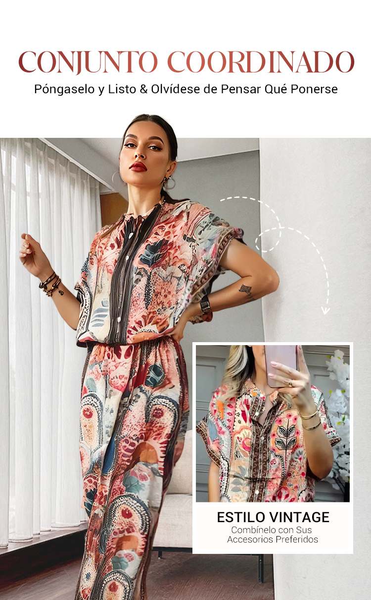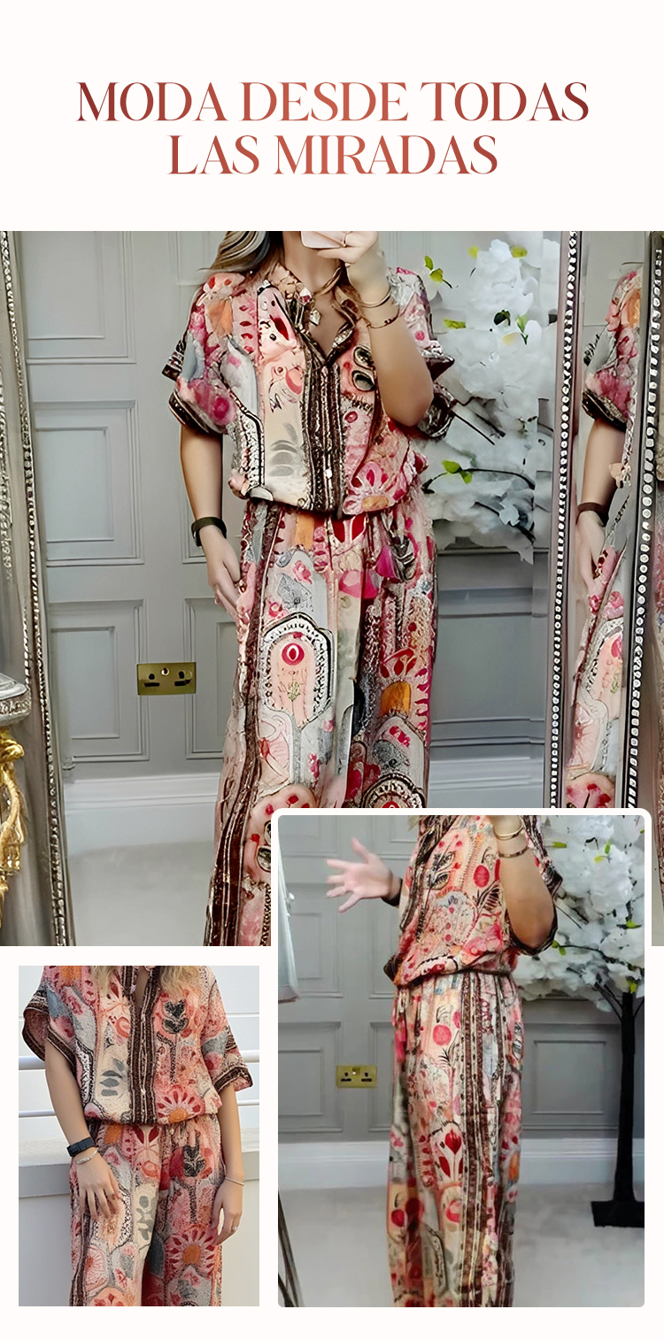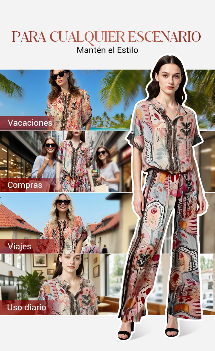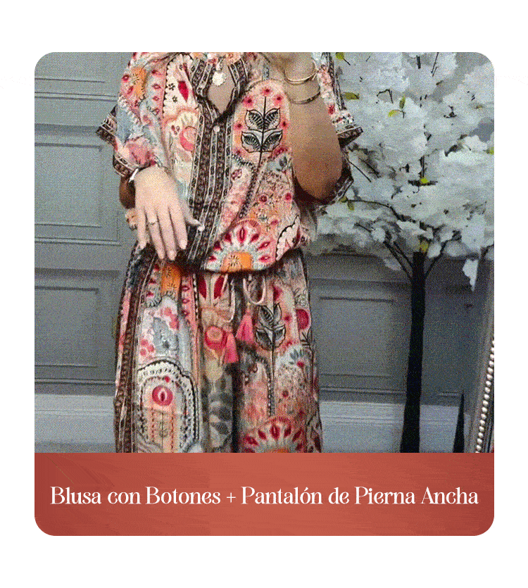 Aumentar cantidad para Conjunto de 2 piezas de top estampado y pantalones de pierna ancha para mujer