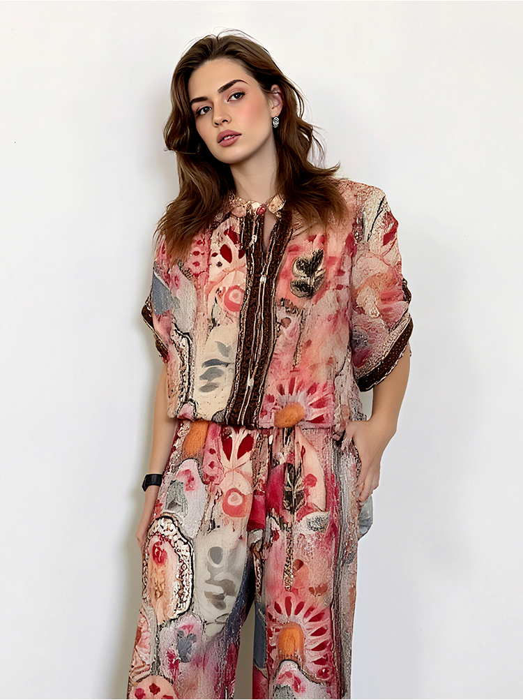 Reducir cantidad para Conjunto de 2 piezas de top estampado y pantalones de pierna ancha para mujer