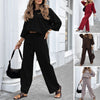Conjunto casual de manga larga y pantalones de color sólido para mujer