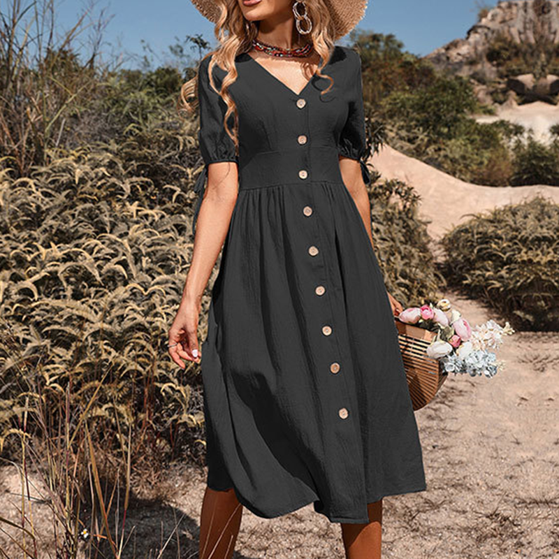 El paquete incluye: 1* Vestido casual de botones con cuello en V para mujer