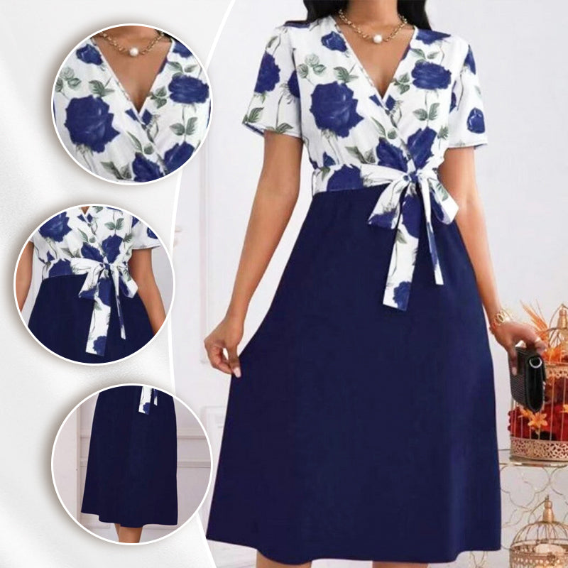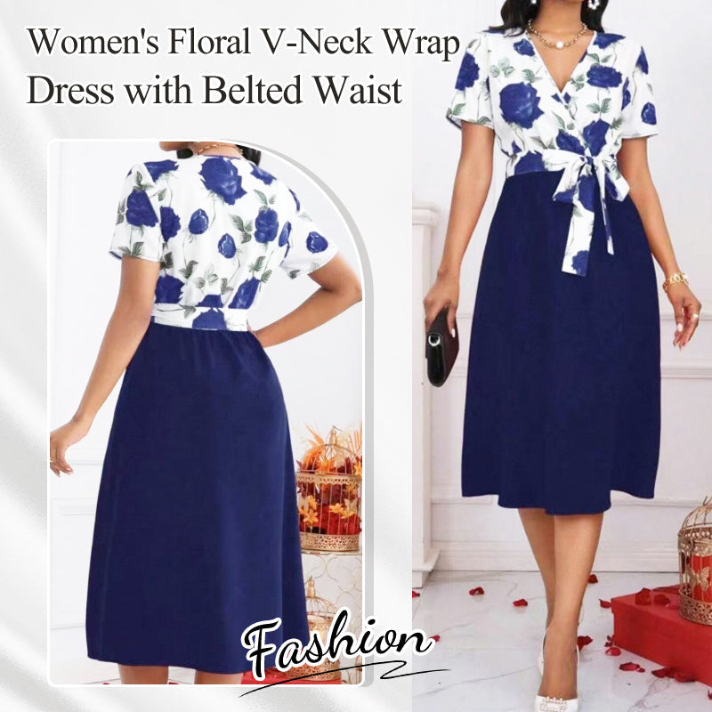 ⏳Vestido cruzado especial⏰floral con cuello en V para mujer y cintura con👗 cinturón por tiempo limitado