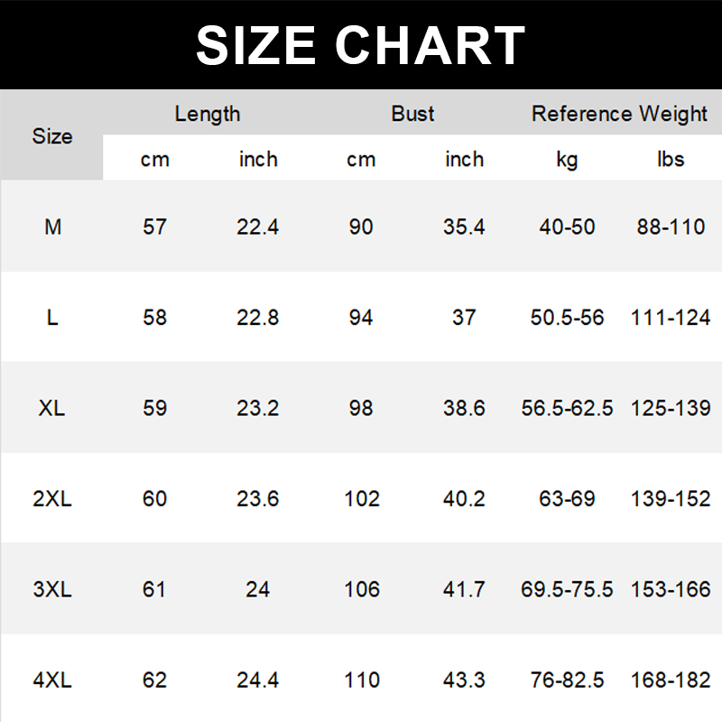 Talla: S, M, L, XL, 2XL, 3XL, 4XL